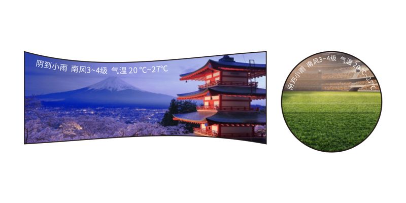 支持矩形、弧形、圆形、环形、折面等各种形状投影幕布上的几何校正,满足不同现场的投影应用。校正后的图像内容均匀一致,过渡平滑自然。