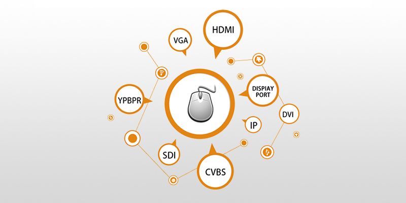 输入输出信号源支持市场上所有的种类包括VGA、YPbPr、CVBS、DVI、HDMI、SDI、HDBase-T、IP流媒体、光传LC接口。